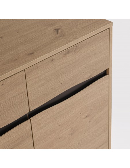 Práctico aparador de estilo actual fabricado en madera MDF con acabado en tono natural.