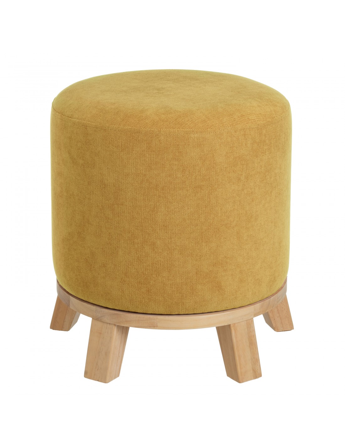 Original taburete redondo con asiento acolchado y tapizado en tejido suave de acabado uniforme.
