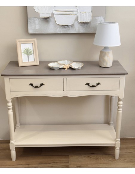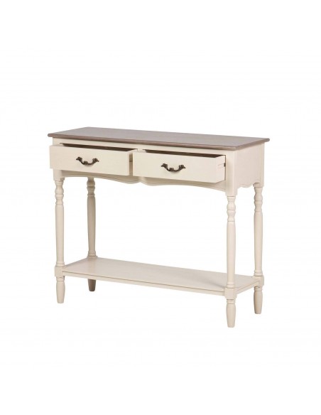 Sus dos cajones son muy útiles para guardar llaves, papeles u otros objetos pequeños, y el estante inferior ofrece un espacio extra para decorar o colocar cestas.