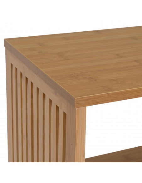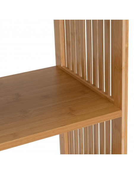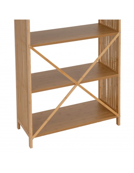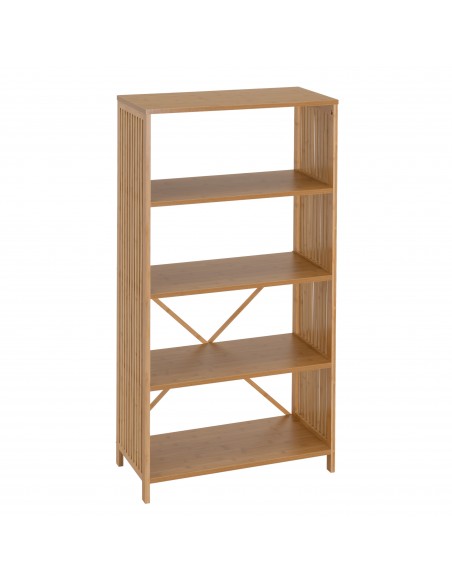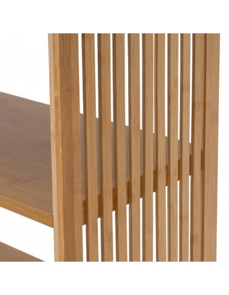 Versátil y con un diseño natural, esta estantería de bambú se compone de cuatro baldas, perfectos para exhibir tus libros, plantas o decoraciones favoritas. Las líneas verticales en los laterales le aportan un estilo moderno y fresco.