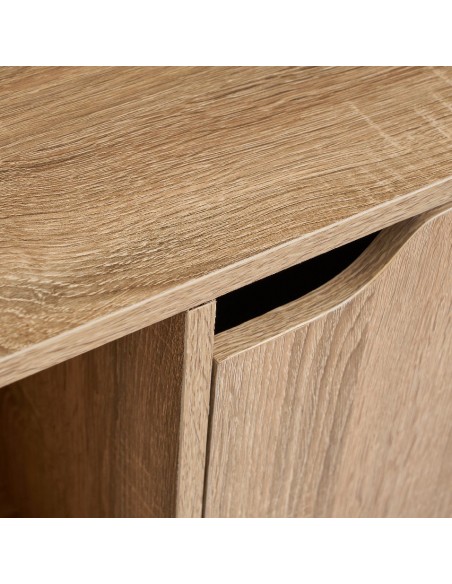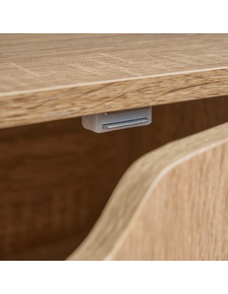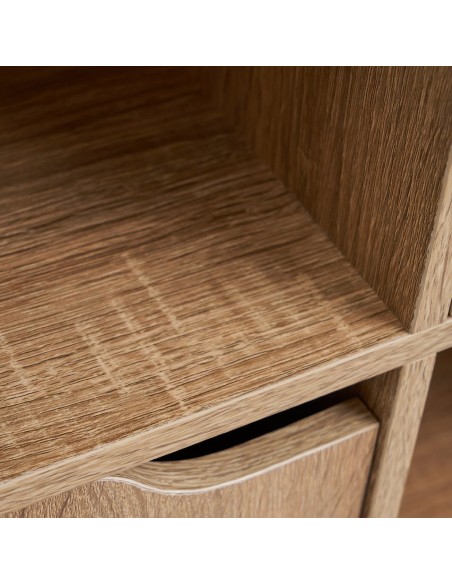 Está fabricada con madera DM, de imitación madera natural con nudos y vetas vistos.