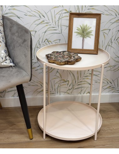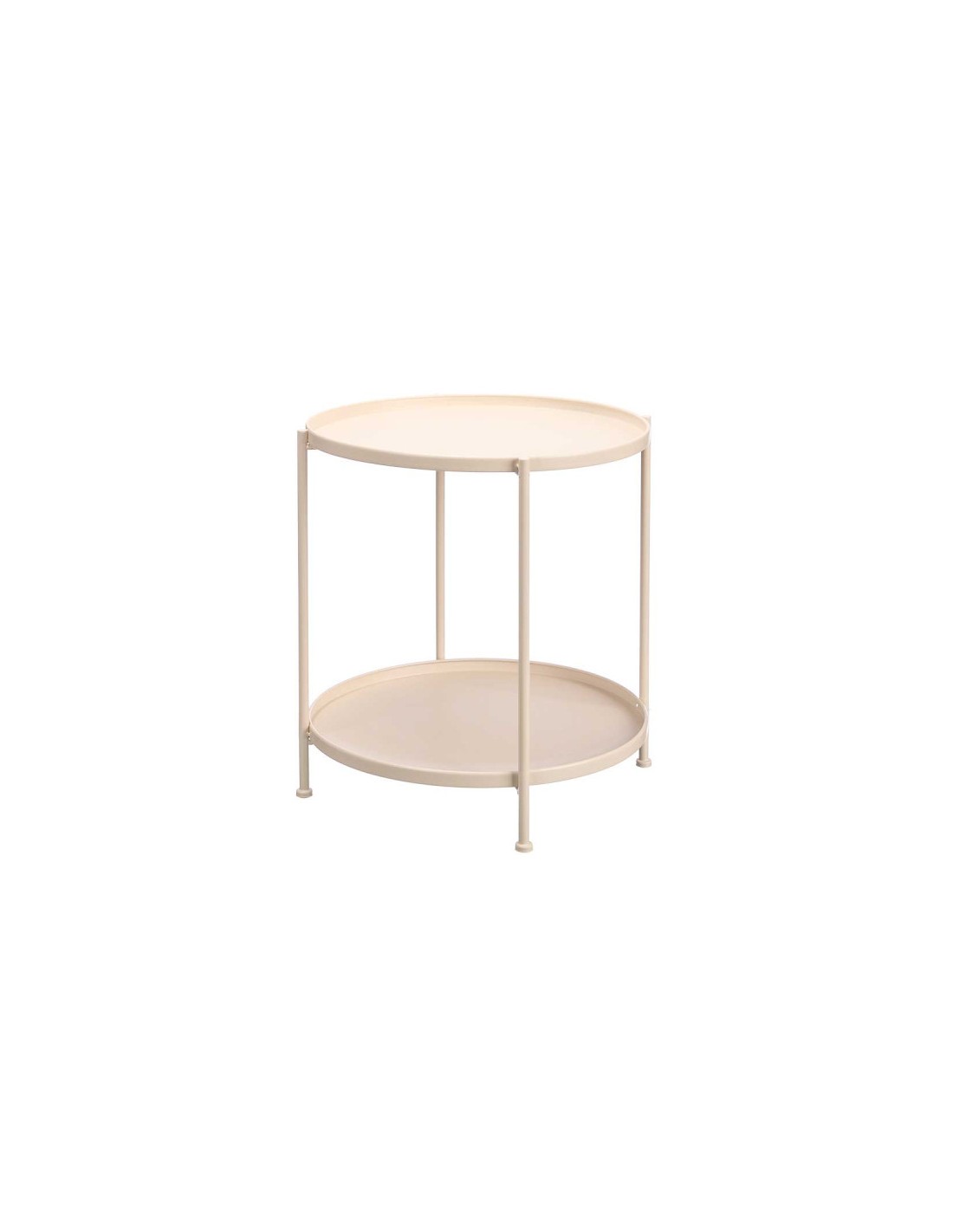 Bonita mesa auxiliar de metal con diseño de dos bandejas redondas. Su acabado sencillo y actual la convierte en una pieza versátil y elegante para cualquier rincón del hogar.