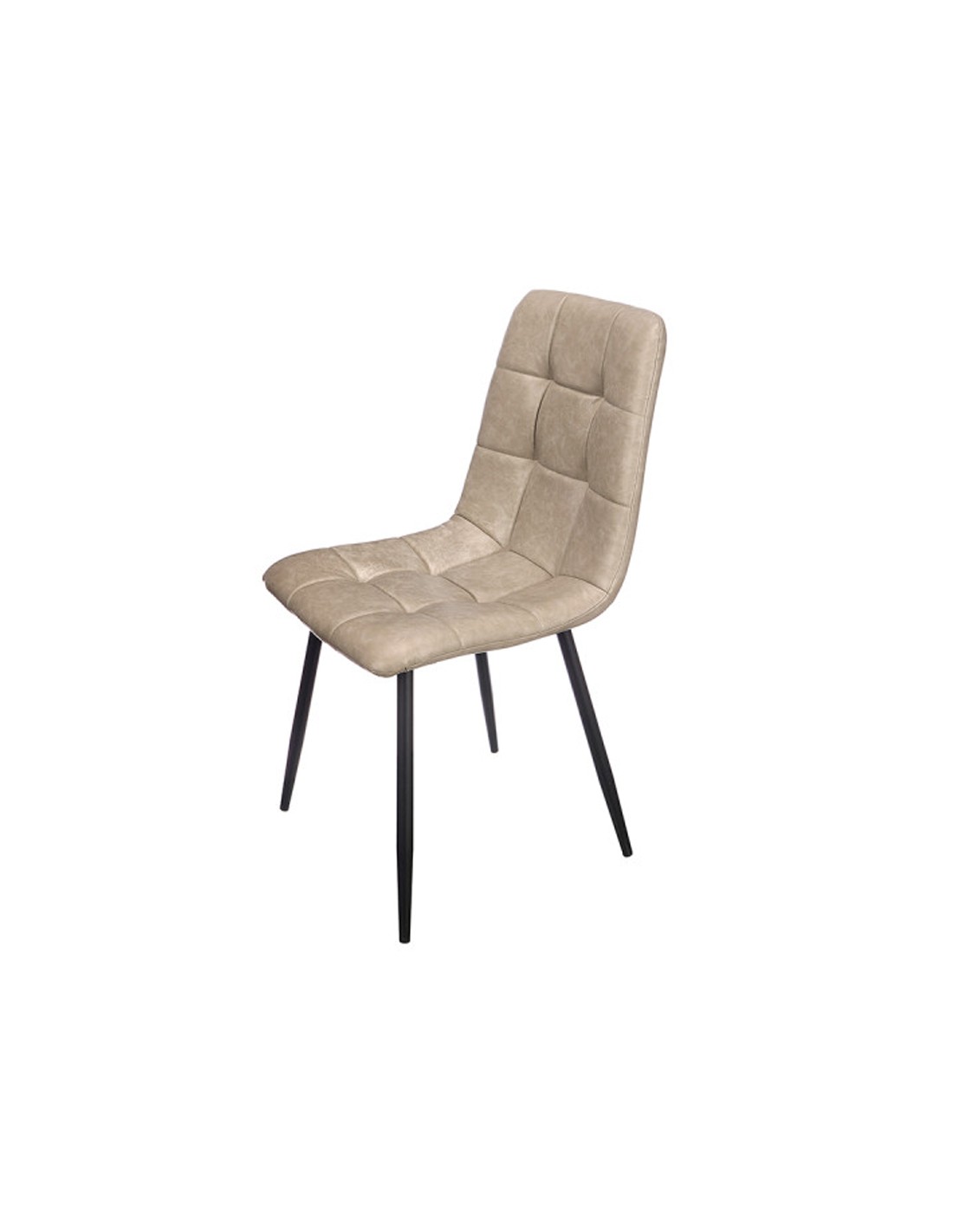 Cómoda silla de diseño actual con tapizado efecto cuero de acabado suave y patas metálicas negras, perfecta para aportar estilo y confort a cualquier espacio.