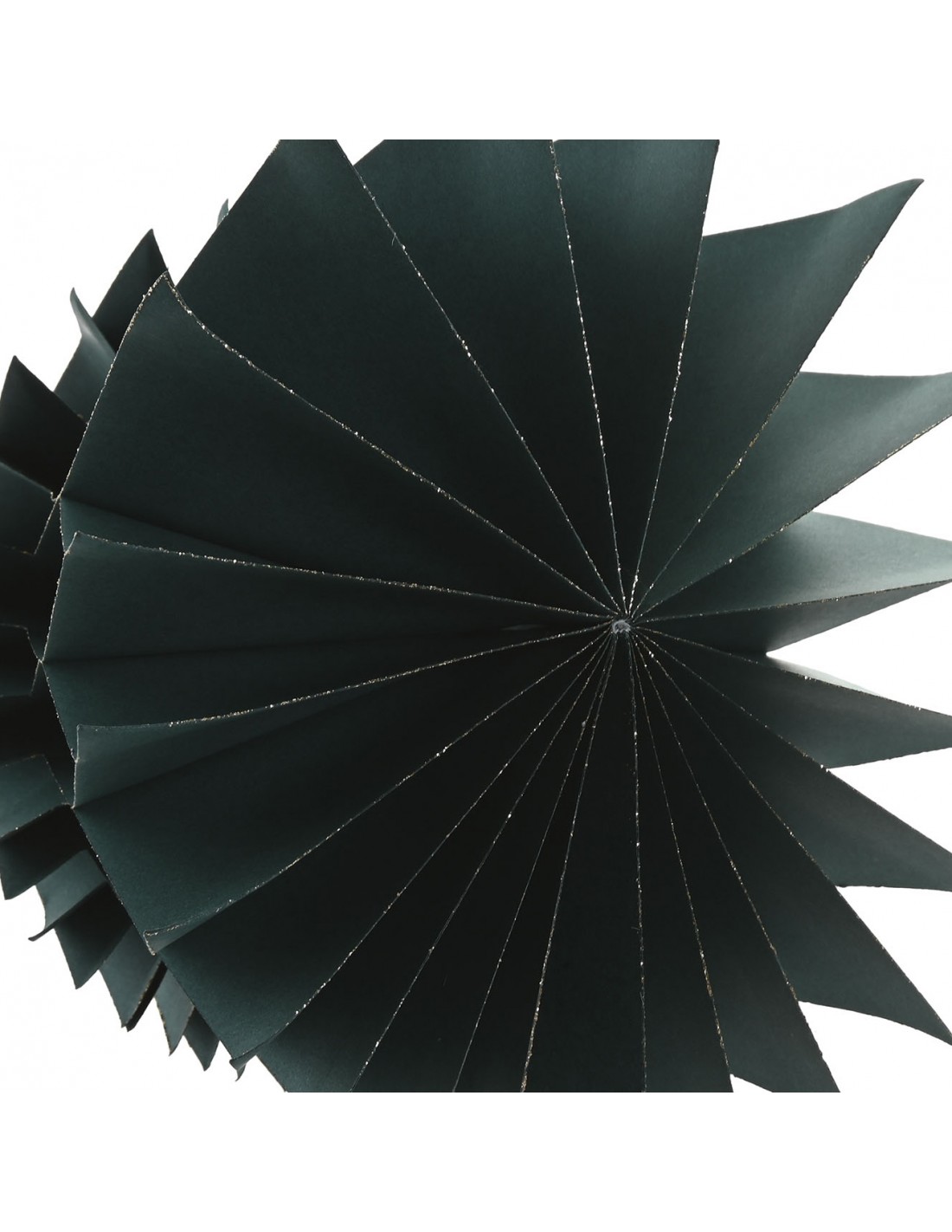 Árbol navideño de papel en tonos intensos con acabado plisado, borde brillante y estrella dorada en la punta.