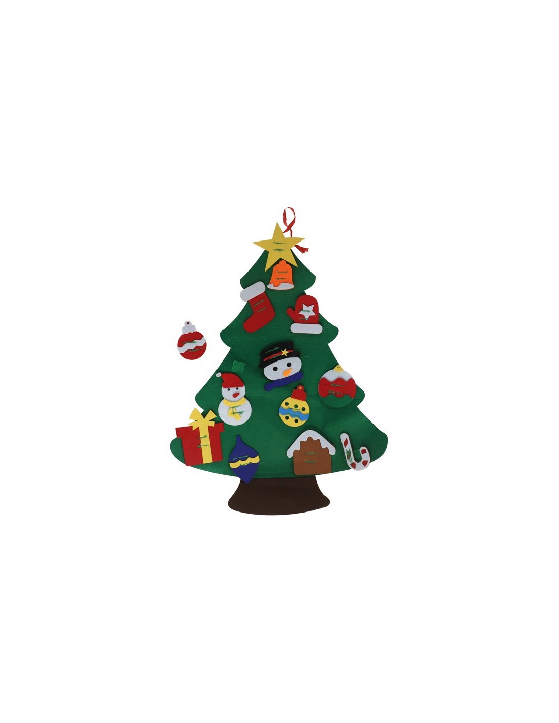Árbol navideño de fieltro con adornos desmontables para colocar y recolocar, perfecto para que los peques participen en la decoración. Una opción divertida, segura y didáctica para introducir el espíritu navideño en casa.