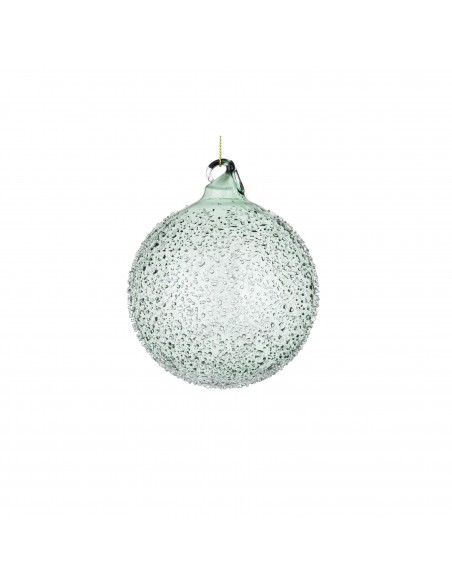 Esta espectacular bola para el árbol de Navidad es de cristal verde con una textura de puntos en relieve que da la sensación de que está helada.