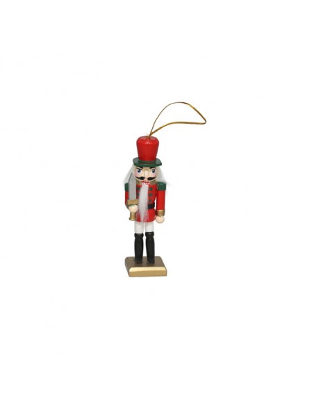 Adorno colgante de cascanueces con detalles clásicos y cuerda dorada para colgar, ideal para decorar el árbol o rincones especiales con estilo tradicional.
