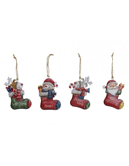 Da la bienvenida de manera divertida y colorida a tus invitados con este colgante con figuras navideñas fabricado en metal.