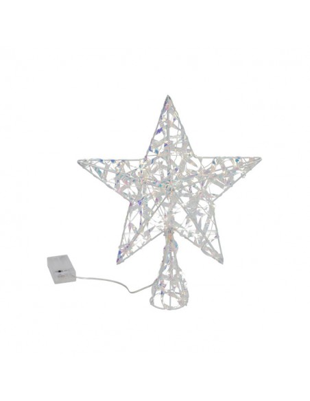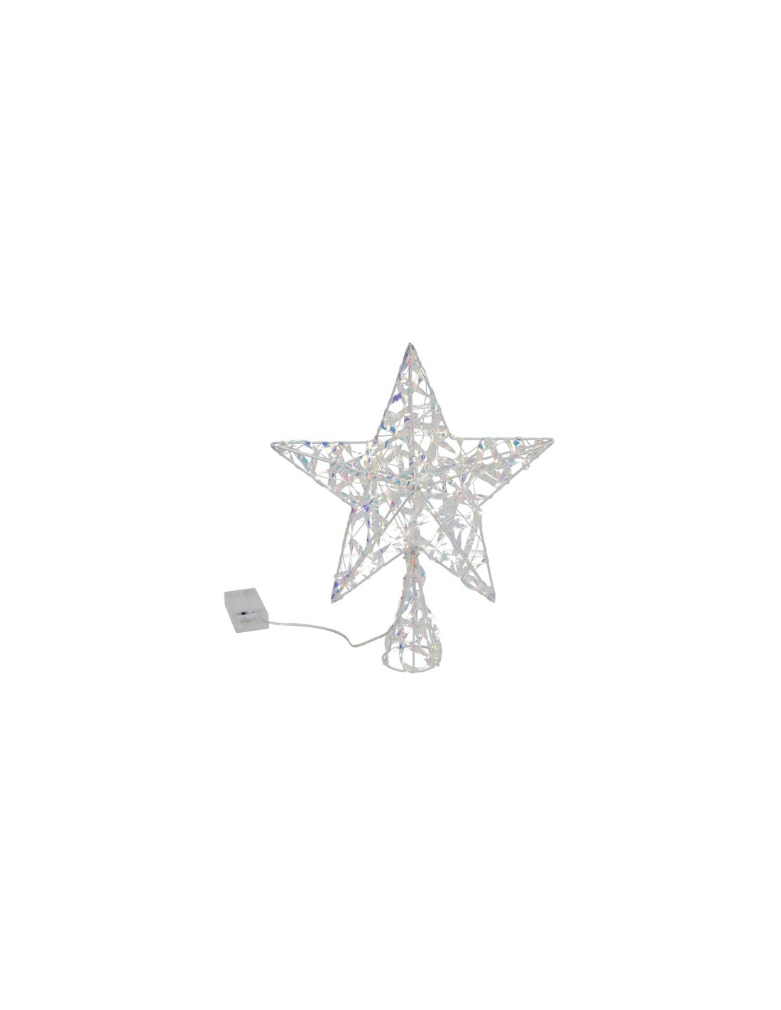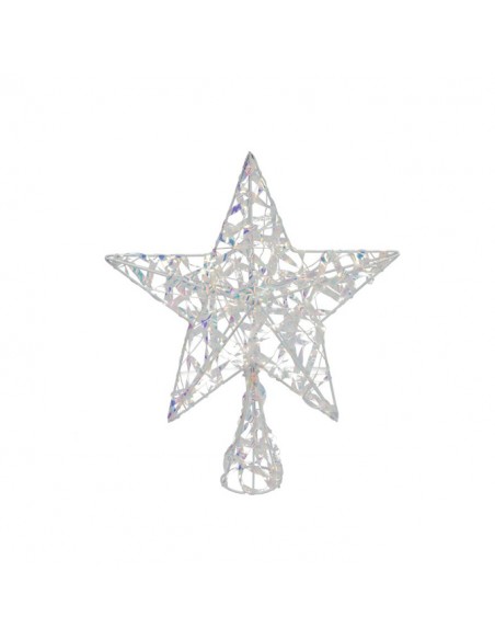Punta de estrella para árbol de Navidad con estructura iridiscente y luz LED integrada, ideal para coronar el árbol con un toque moderno, brillante y elegante.