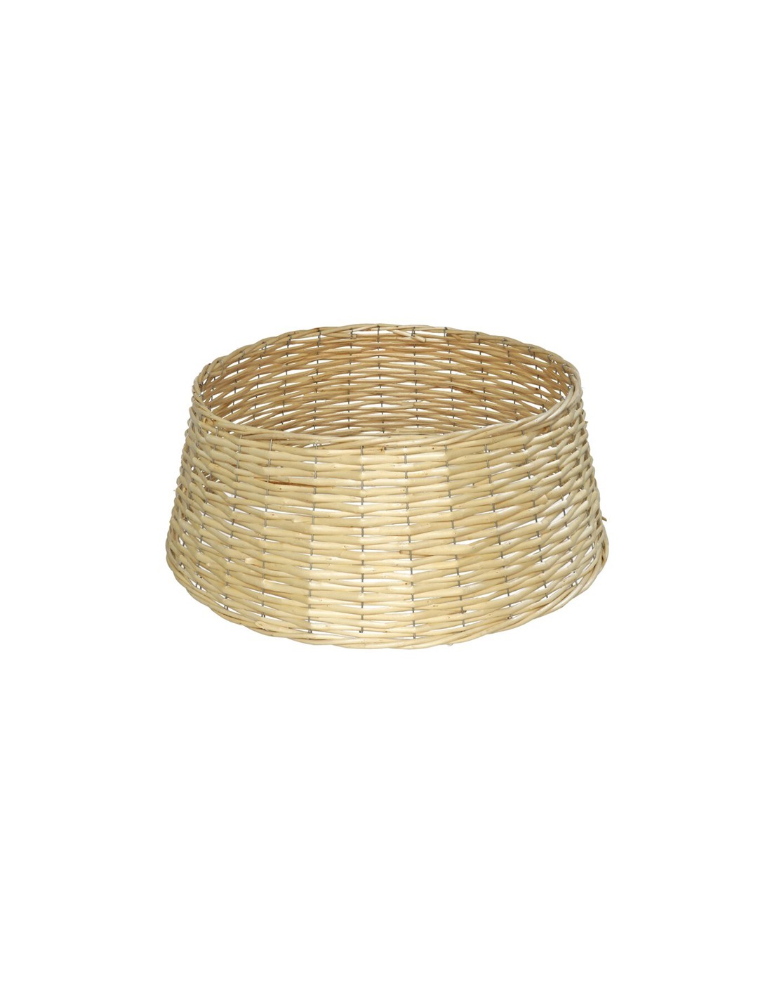 Pie decorativo de mimbre en tono natural para árbol de Navidad, una opción práctica y estética para cubrir la base del árbol y darle un acabado cálido y rústico a tu decoración festiva.