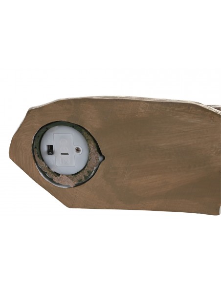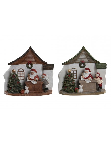 Casita decorativa de resina con figura de Papá Noel, árbol iluminado y detalles navideños. Funciona con pilas e interruptor en la base.
