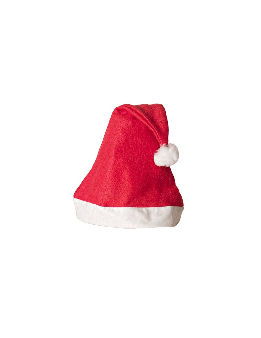 Bonito y clásico gorro de Papá Noel de pico de suave tela en color rojo con su borde y su pompón blanco.