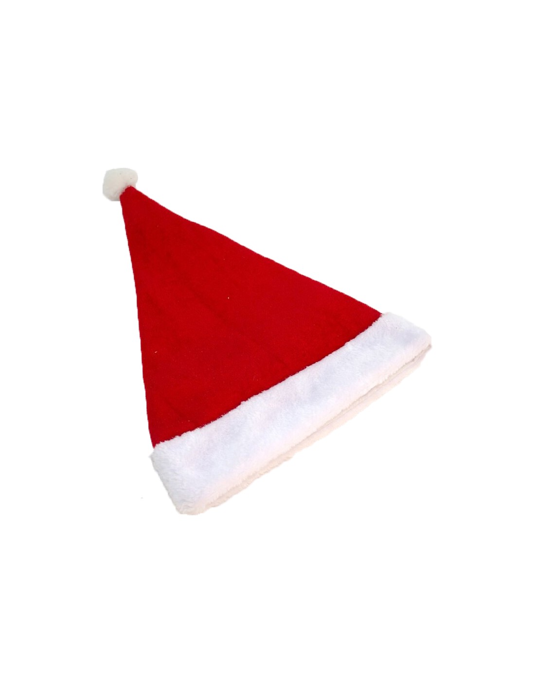 Bonito y clásico gorro de Papá Noel de pico de suave tela en color rojo con su borde y su pompón blanco.