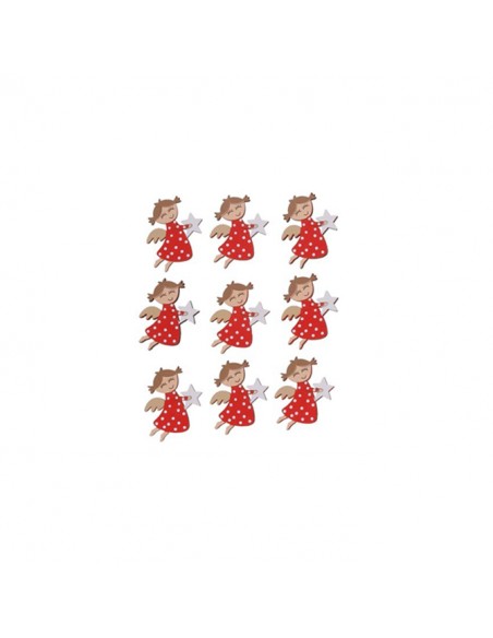 Set de 10 figuras decorativas de ángel con diseño navideño y pegatina de doble cara, perfectas para manualidades, envolver regalos o decorar postales y etiquetas.