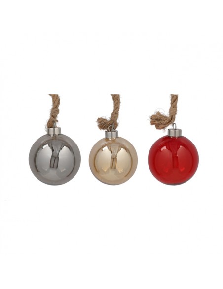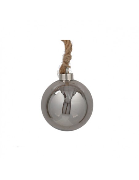 Bola navideña colgante con cuerda rústica y 16 luces LED en su interior.