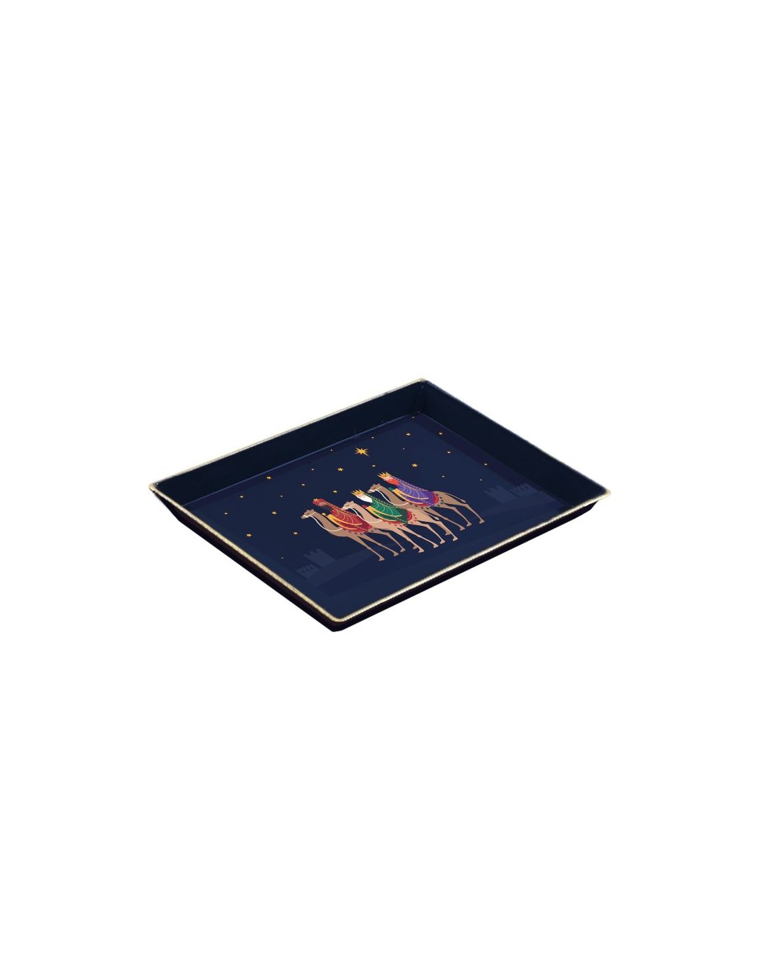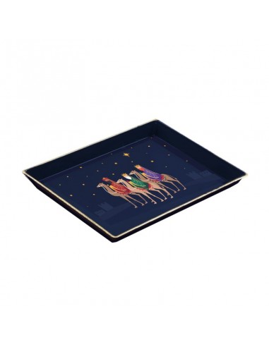 La bandeja Reyes es una pieza especial para disfrutar la magia de la Navidad. Su diseño en azul noche con los tres Reyes Magos bajo un cielo estrellado y el borde dorado aporta elegancia y un toque festivo a tu mesa. Ideal para servir dulces, turrones o usar como base decorativa, combina estilo y funcionalidad para crear ambientes cálidos y llenos de encanto.
