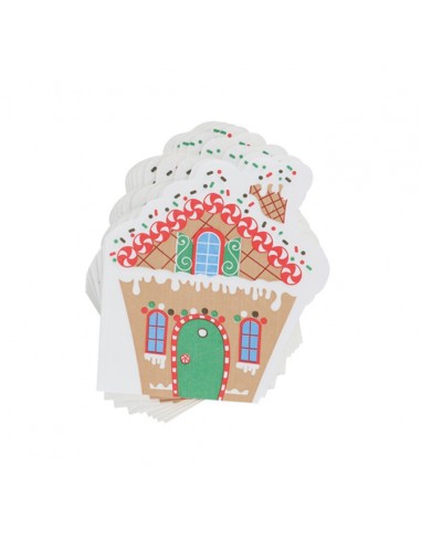 Pack de 12 servilletas de papel con forma de casita, decorada con bastones, glaseado y ventanas de colores.