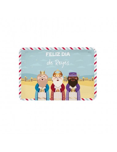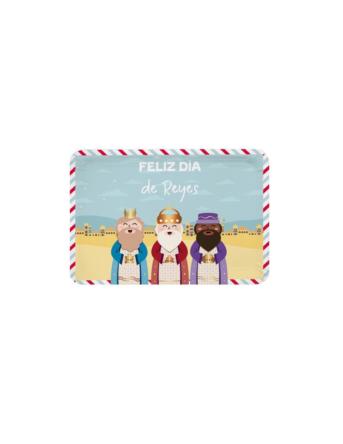 Este set de 2 bandejas fabricados con cartón es perfecto para sacar los turrones o polvorones al centro, tiene un bonito diseño estampado con los Reyes Magos y además así evitarás tener que fregar la loza despues de un divertido día.