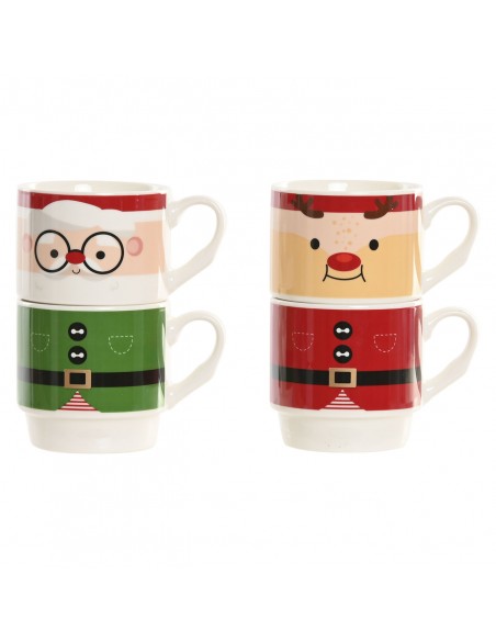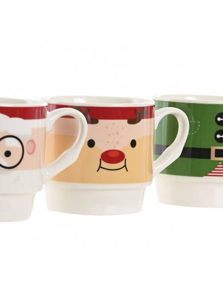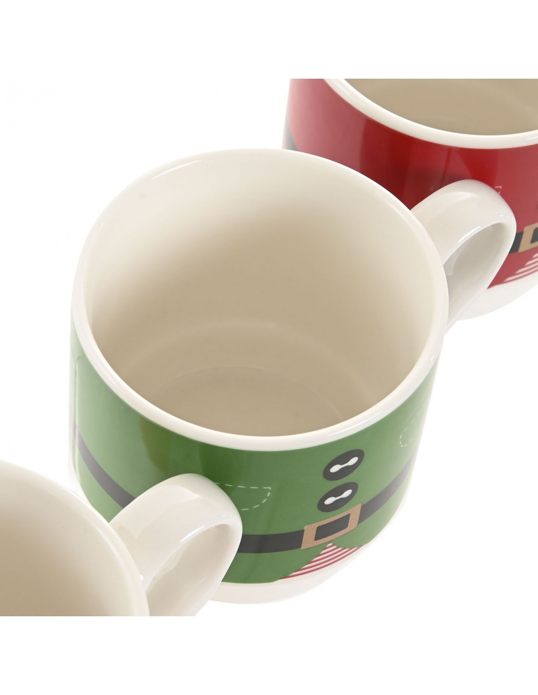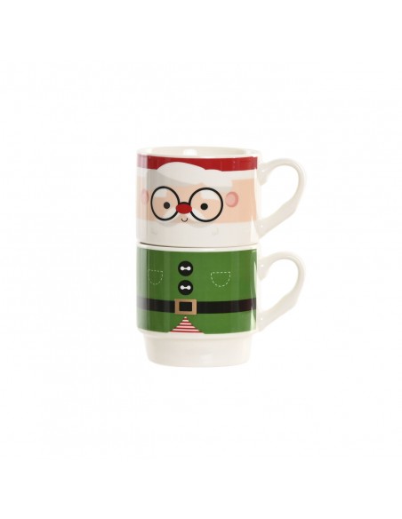Set de dos tazas de porcelana con diseños navideños que se completan al apilarlas.