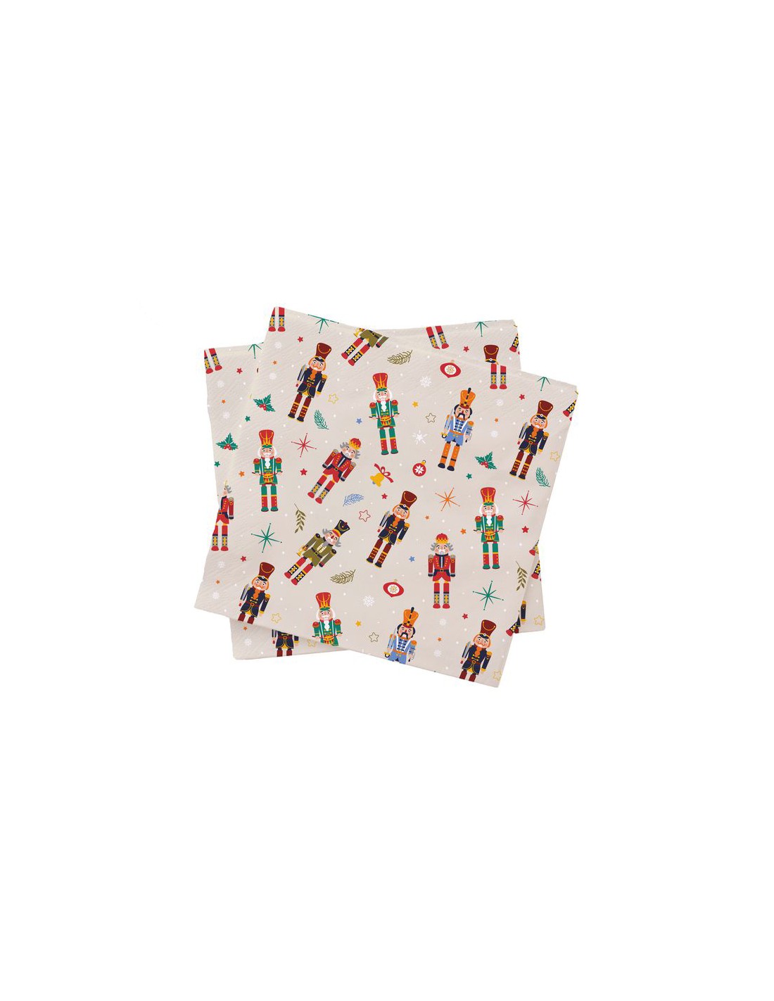 Este pack de 20 servilletas es ideal para dar un toque divertido y navideño a tu mesa. Con un alegre diseño de cascanueces en colores vivos y detalles festivos, llenarán tus comidas y meriendas de magia y color. De papel suave y resistente, son perfectas para decorar sin complicaciones y disfrutar al máximo de cada celebración.