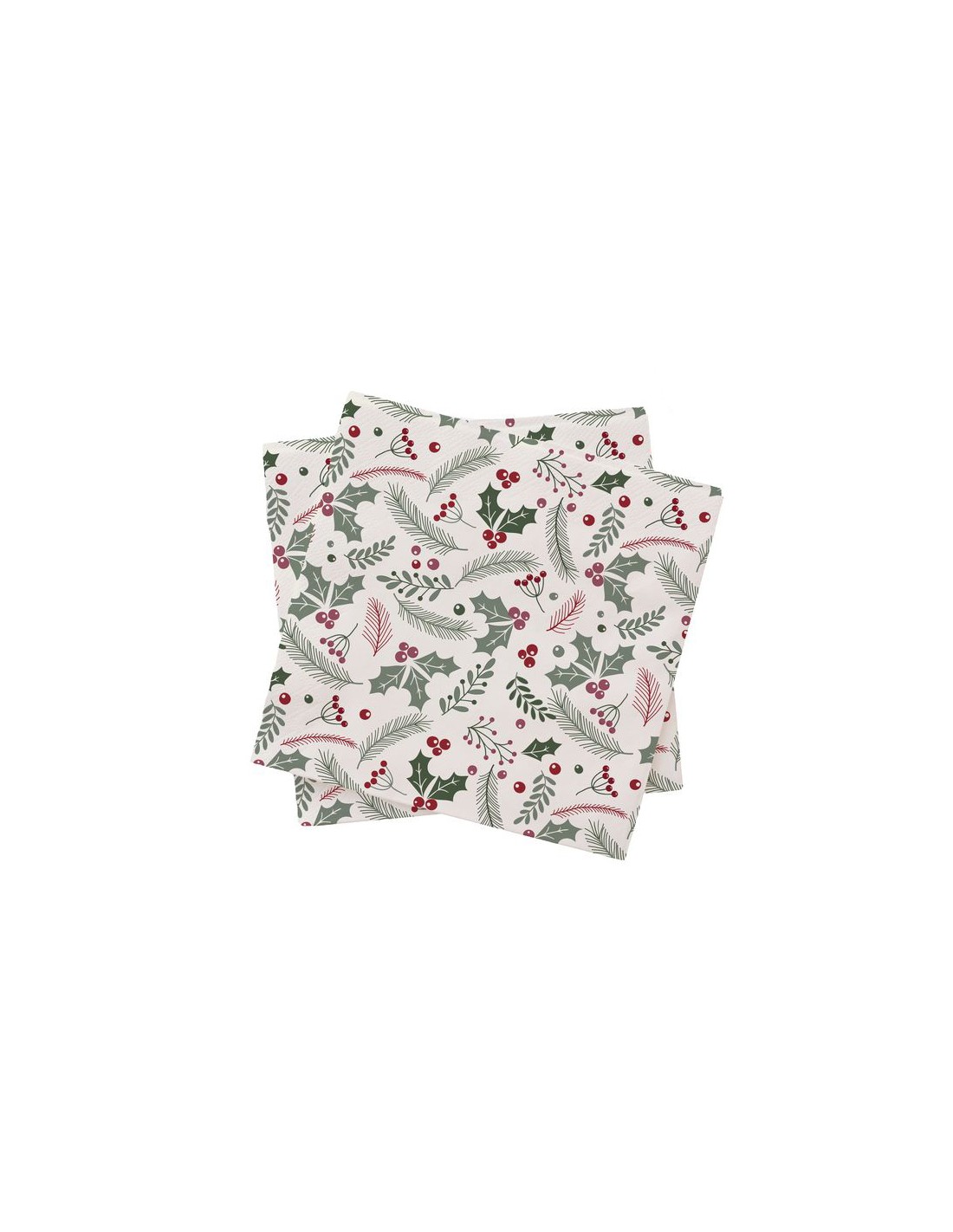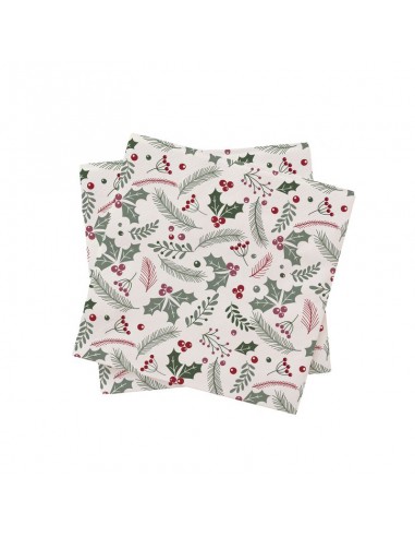 Este pack de 20 servilletas es ideal para vestir tu mesa con un toque navideño natural y delicado. Con su diseño de ramas de pino, hojas de acebo y bayas rojas, aportan frescura y armonía a cualquier comida especial. De papel suave y resistente, son perfectas para crear una mesa bonita sin complicarte.