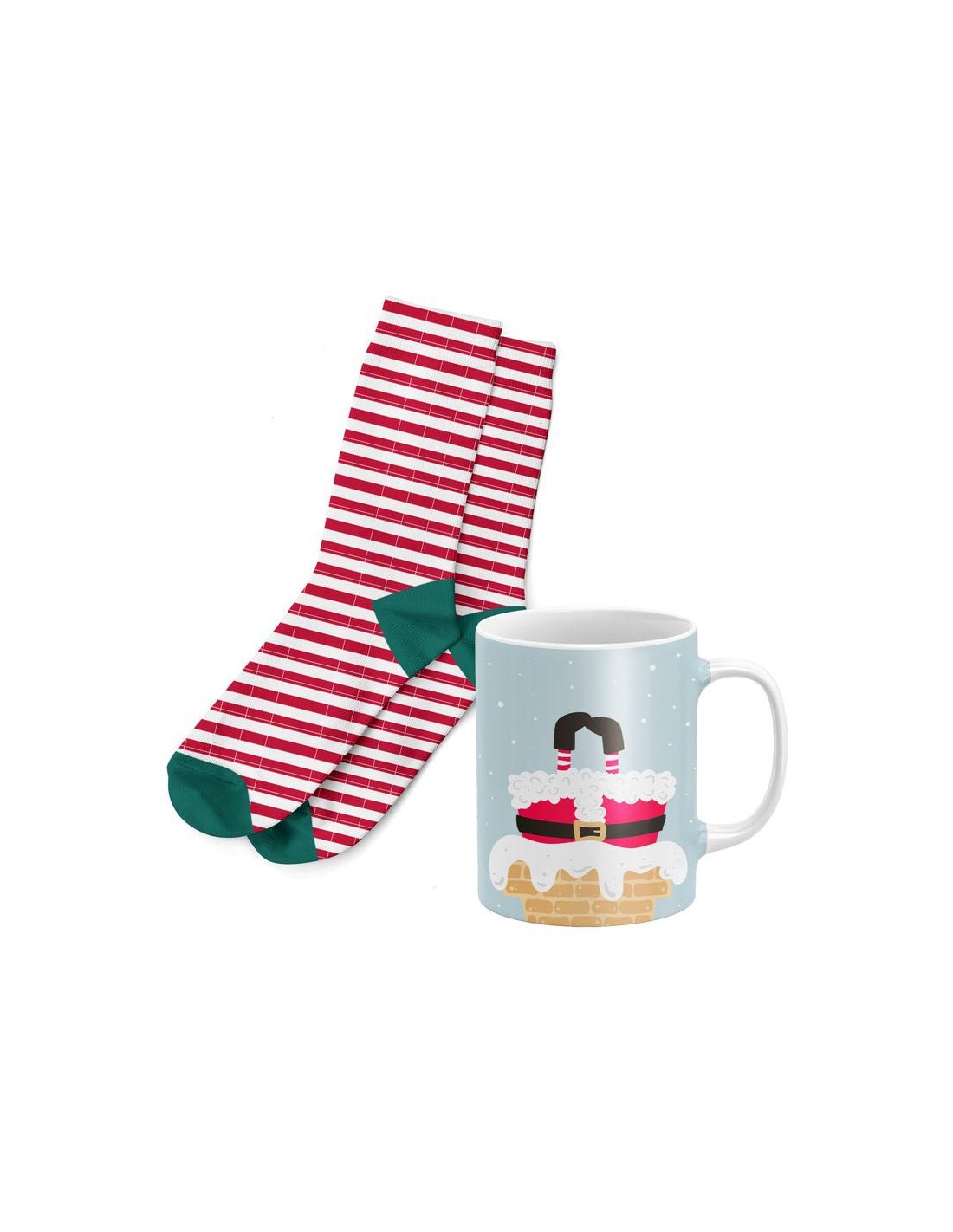 Un detalle divertido y original para disfrutar de la Navidad. El pack incluye una taza con diseño de Papá Noel y unos calcetines a rayas rojas y blancas con puntera verde, perfectos para regalar o darte un capricho. Ideal para empezar el día con una bebida caliente y ese toque navideño que llena de alegría cada mañana.