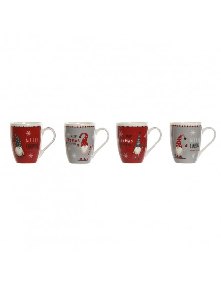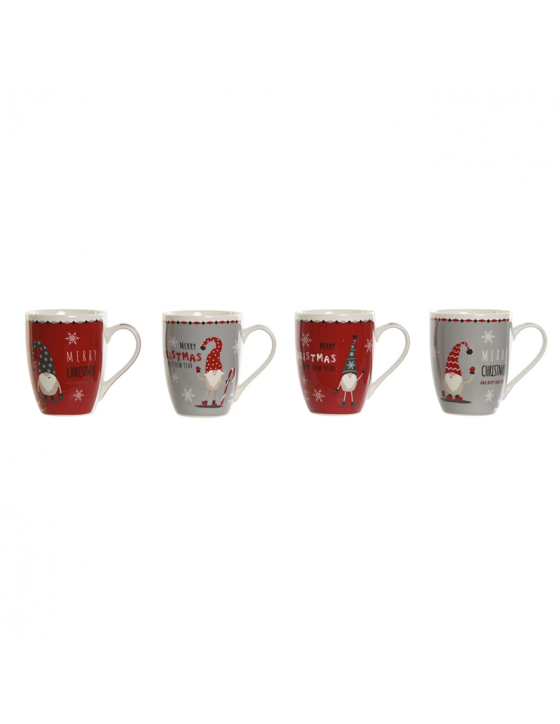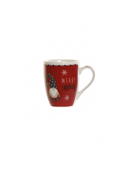 Taza de porcelana con diseño de gnomos navideños y mensajes festivos, ideal para disfrutar bebidas calientes en invierno.