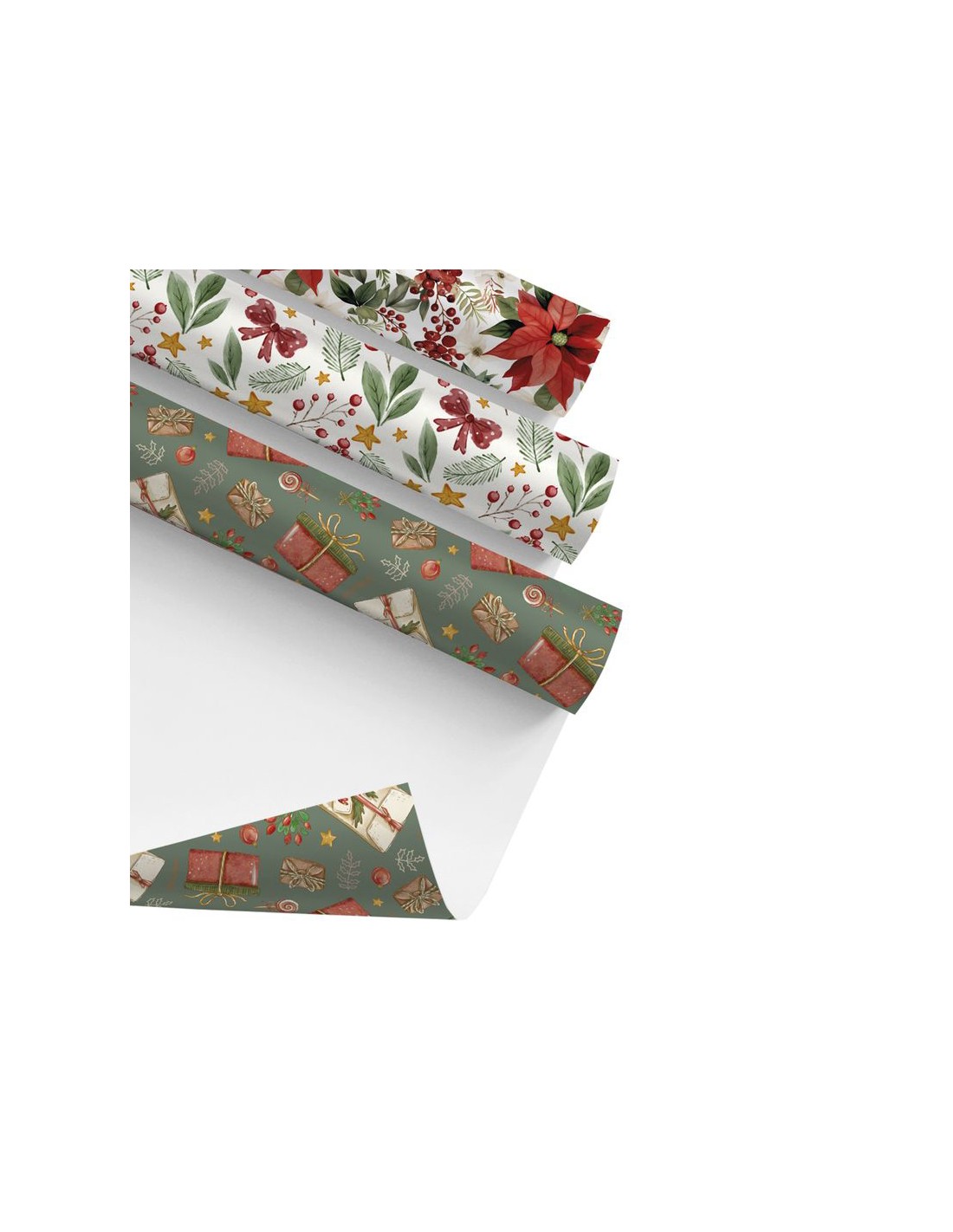 Papel decorativ con diseño navideños, perfecto para envolver tus regalos con un toque especial. Cada modelo combina tonos cálidos y detalles festivos como flores de Pascua, lazos y ramas de abeto. Su acabado suave y resistente permite un envoltorio bonito y fácil de manejar. Se venden por unidad y en modelos surtidos. Ideal para dar a cada detalle el cariño que merece.