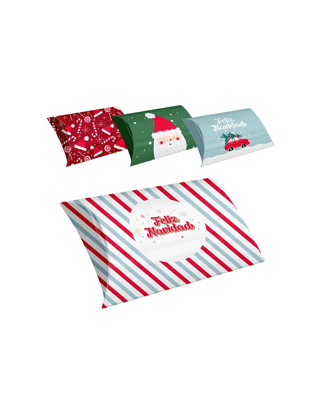 Set de 4 cajitas de cartón plegables decoradas con un estampados navideño.
