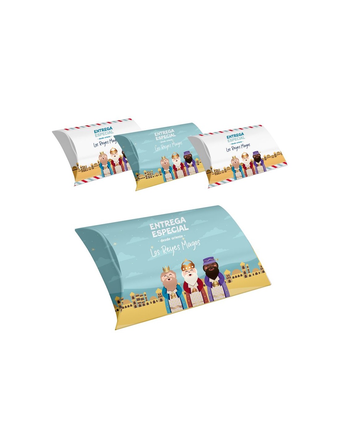 Set de 4 cajitas de cartón plegables decoradas con un estampados navideño con los Reyes Magos.