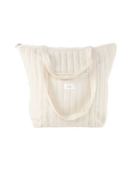 Suave bolso de tela de algodón con un bonito sencillo diseño liso y una frase central que dice ¨beauty moments¨.