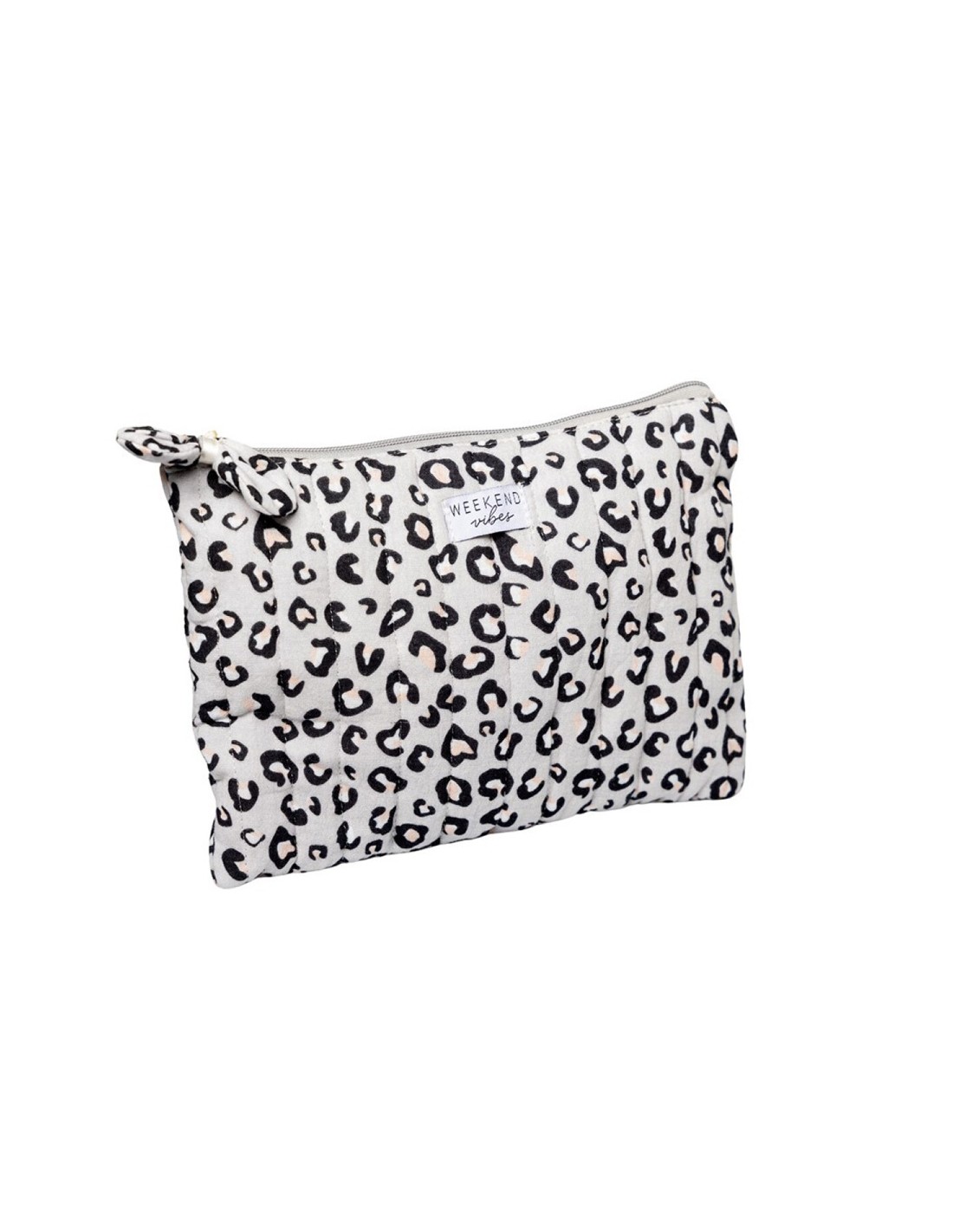 Neceser plano con diseño animal print y detalle de lazo en la cremallera, ligero y con un toque desenfadado que lo convierte en un básico con personalidad.