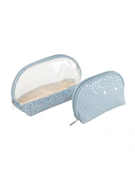 Original set de 2 neceser de PVC en diferentes tamaños, el grande transparente y el pequeño con estampado floral.