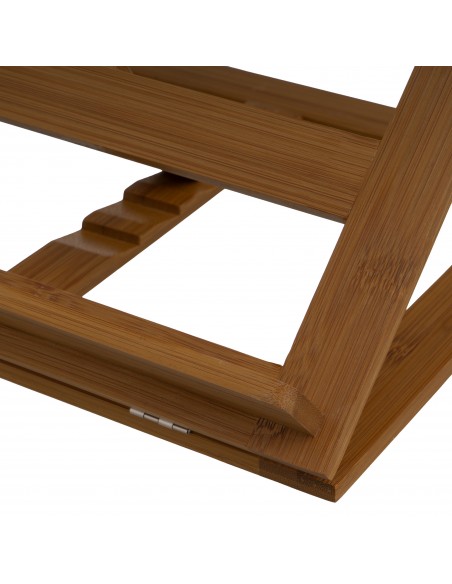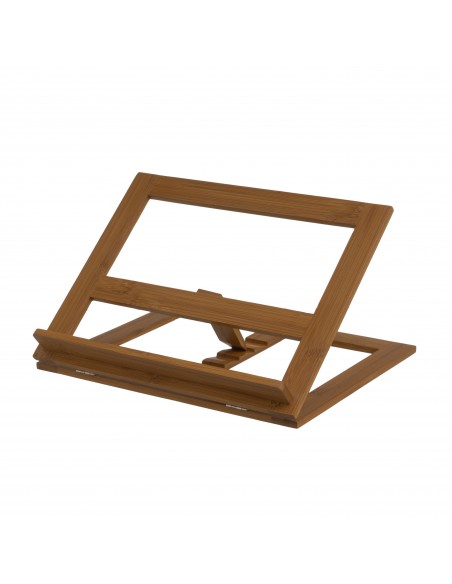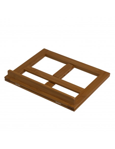 Práctico atril plegable fabricado en bambú con un cálido acabado efecto nogal.