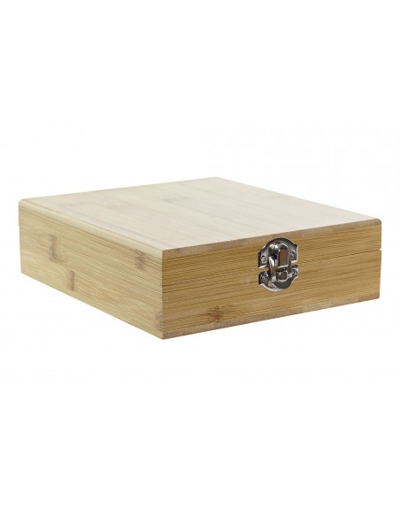 Viene presentado en una caja rcuadrada de bambú que le da un toque muy original.