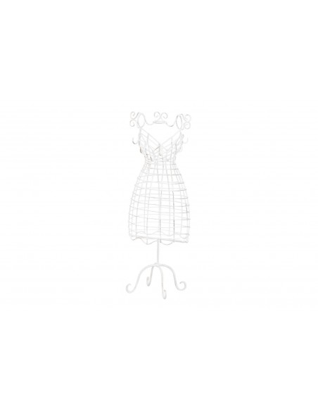 Su diseño en forma de vestido con detalles en espiral es ideal para exhibir collares, pulseras y anillos. Perfecto para decorar tu tocador con estilo y funcionalidad.