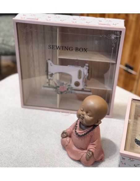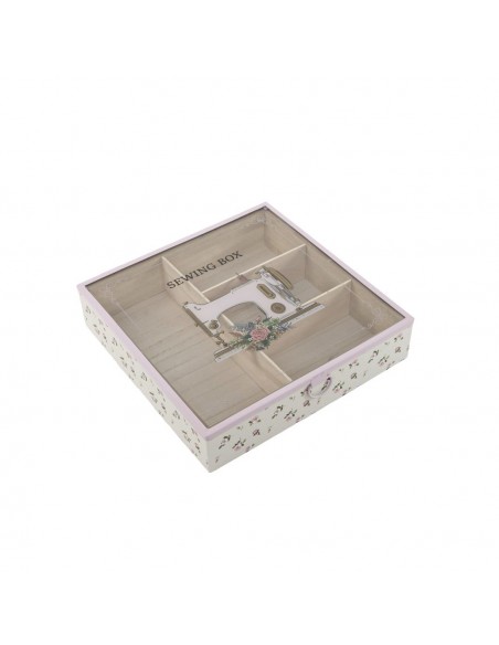 Un imprescindible para los amantes de la costura. Esta caja organizadora de madera, con su diseño vintage y tapa de cristal ilustrada con una encantadora máquina de coser, es ideal para guardar hilos, botones y pequeños accesorios. Además de práctica, es un elemento decorativo lleno de encanto para cualquier rincón creativo. ¡Haz de cada costura un momento especial!