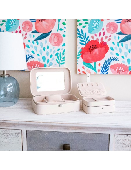 Bonito y práctico joyero de tamaño viaje para organizar tus joyas.